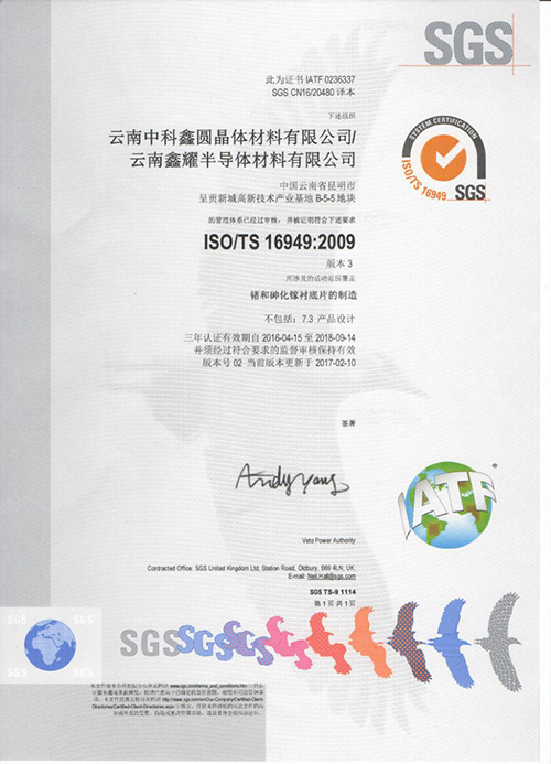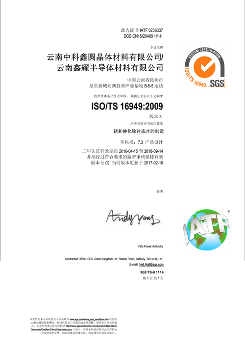 云鍺質(zhì)量管理體系認(rèn)證書(英文)