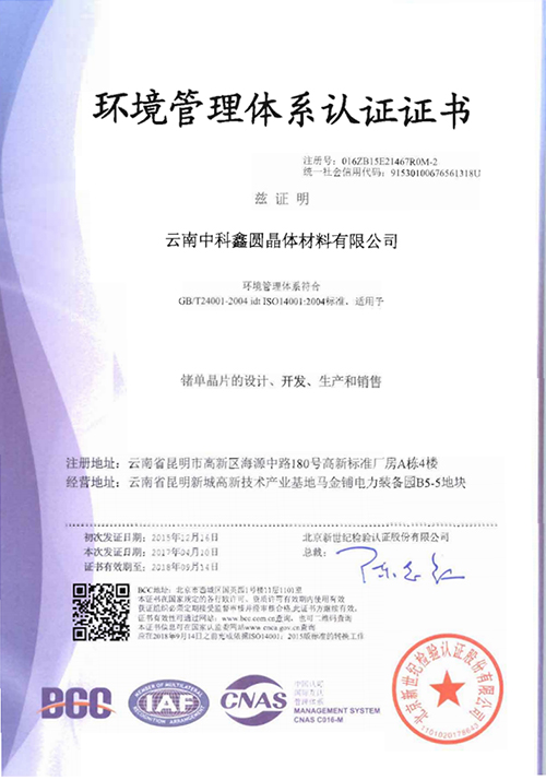 中科-環(huán)境管理體系認(rèn)證證書(中文)